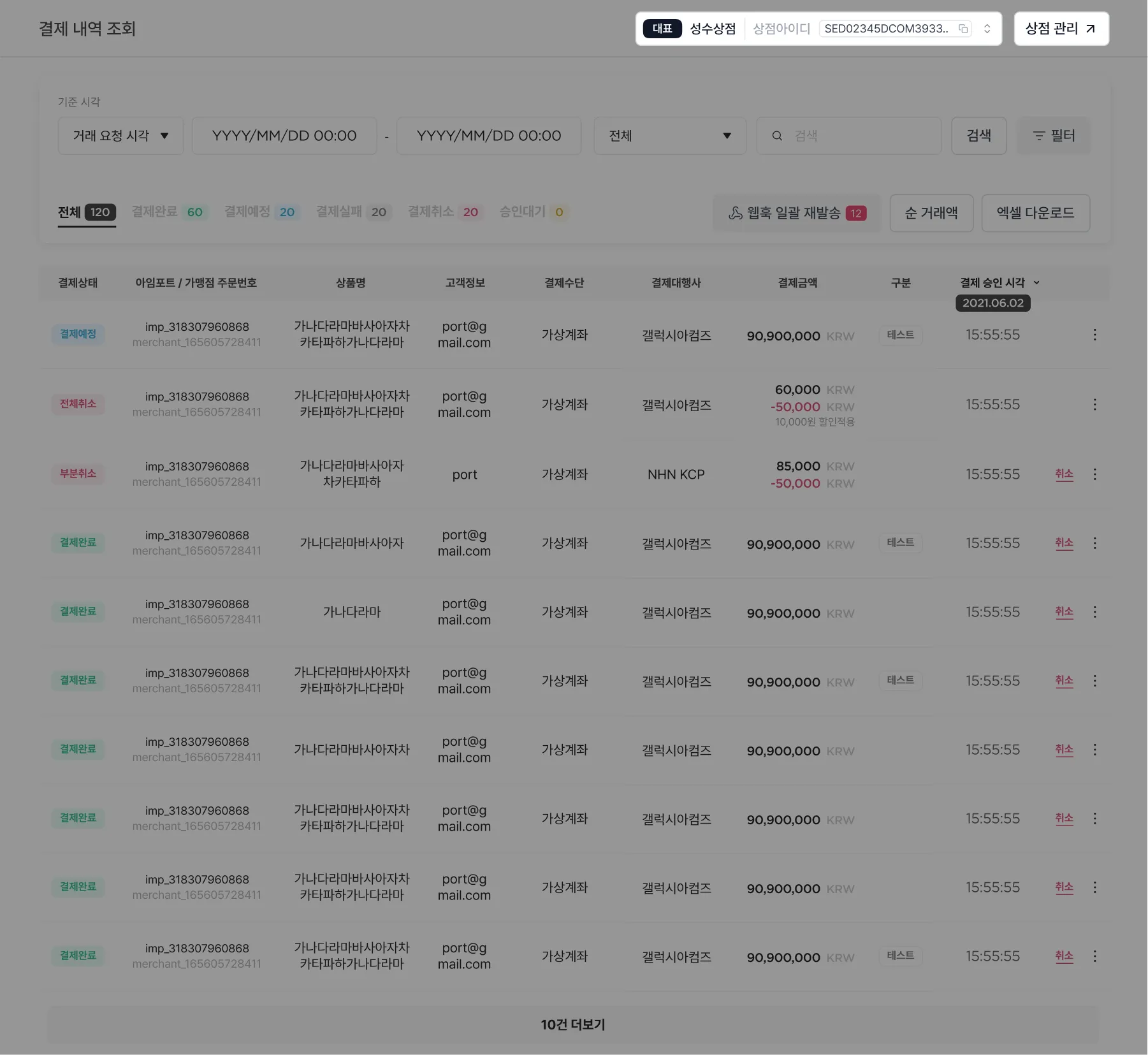 - 전체 또는 하위 상점별로 나누어 통합 결제 내역을 확인할 수 있습니다.