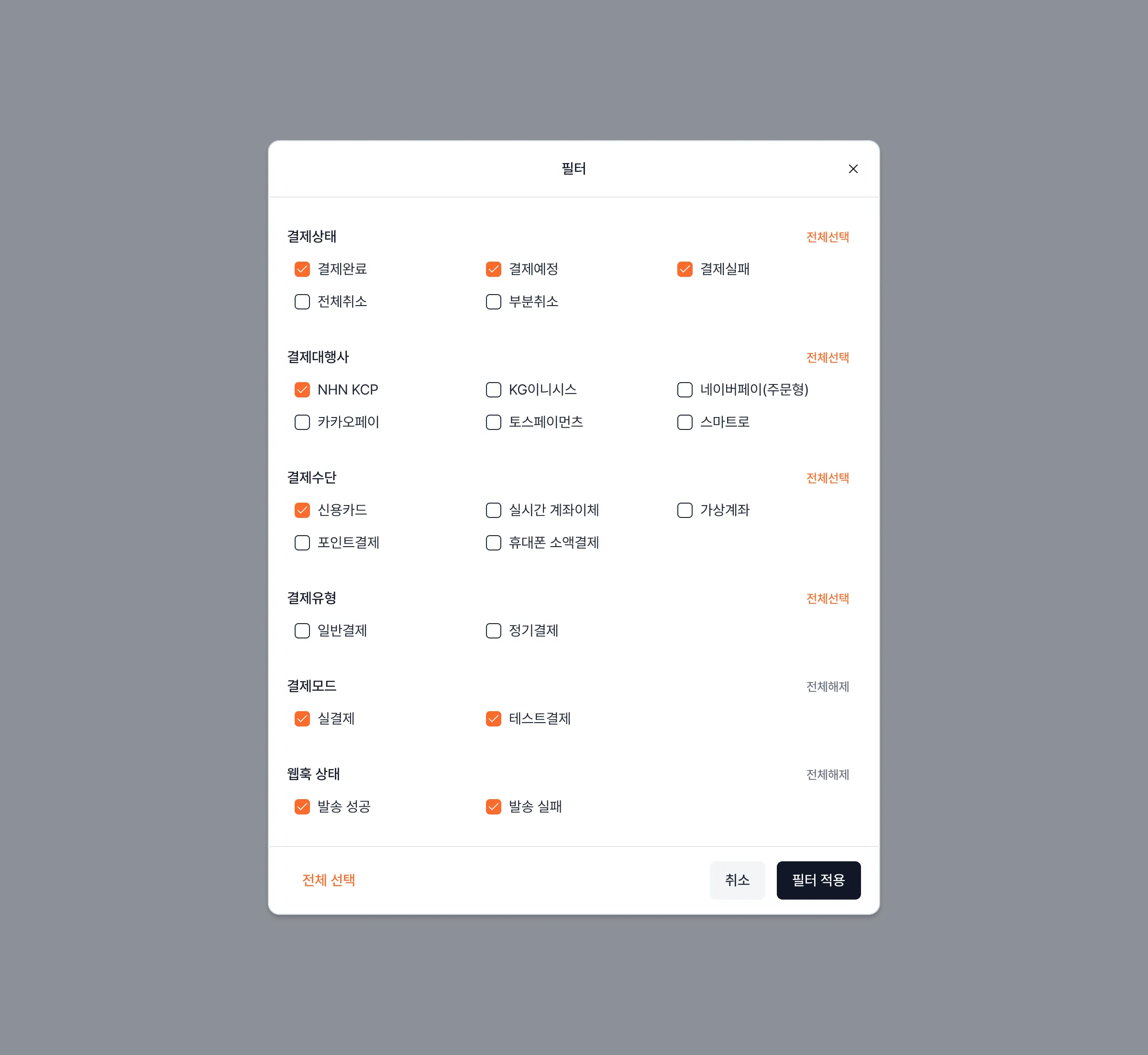 - 통합 결제 내역 - 필터 사용성을 개선하였습니다.