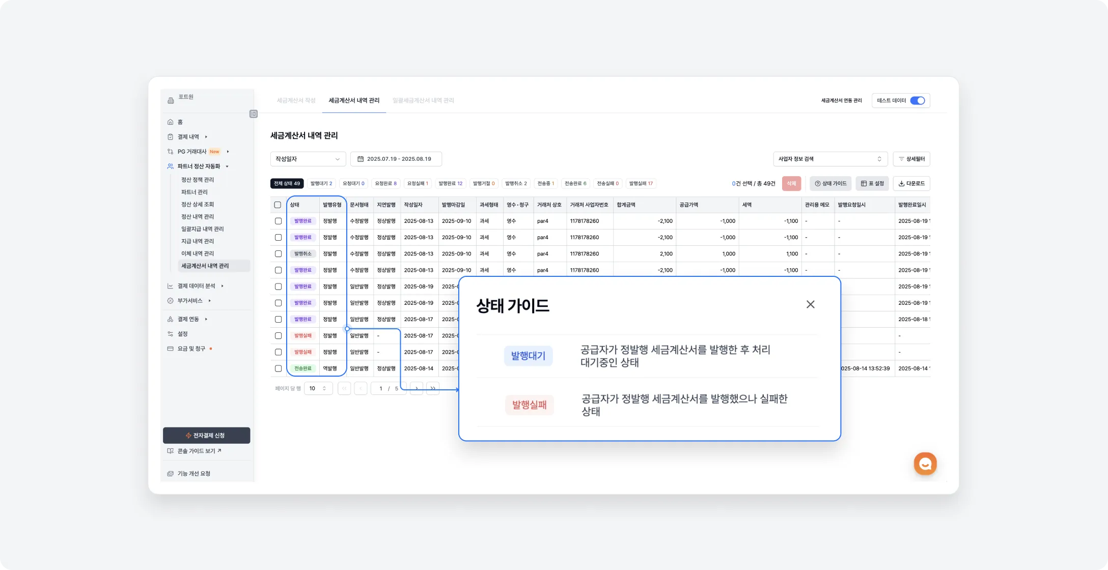 세금계산서 내역 관리